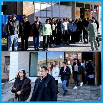 при возникновении ЧС. Участники учений организованно покинули здание техникума, а после проверки безопасности в главном