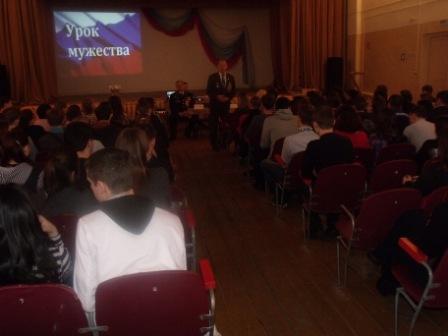20 февраля в актовом зале состоялся урок мужества «Честь. Долг. Родина». У нас в гостях побывали: генерал-майор Захаров Сергей Александрович, подполковник Воронин Анатолий Павлович.