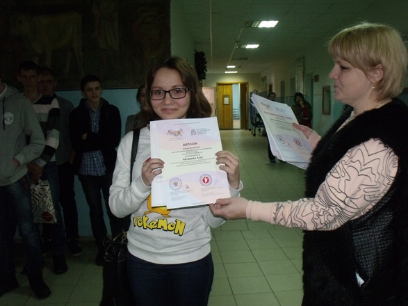 Заместитель директора по учебной работе Вавилина Светлана Владимировна наградила ребят-участников всероссийской предметной олимпиады «Страна талантов» грамотами и медалями. Победителями Федерального уровня по дисциплине «Литература» стали студентки 11 ЭКиБУ группы: Потапова Анна, Строкина Александра и Кириличева Анастасия. Победители регионального уровня по дисциплине «Биология» – студенты 11 Кин группы Рубцов Макар и Чихирников Вадим. Лучший результат на Региональном уровне по дисциплине «Химия» у студентки 11 Вет группы Пеньковой Елены, лучший результат на Муниципальном уровне по дисциплине «Информатика» у Сизова Ярослава из11 ИС группы. В завершении линейки был зачитан проект приказа по итогам первого полугодия.