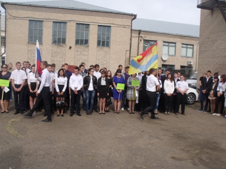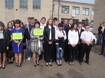 На линейке посвященной дню знаний присутствовали все учебные группы техникума во главе с классными руководителями и заведующими отделениями. На данное мероприятие была приглашена гостья-главный специалист по делам молодежи администрации Илекского района Завгороднева Юлия Эдуардовна. Она выступила с поздравительным словом и пригласила ребят к сотрудничеству в Российский союз молодежи. С поздравительным словом также выступила исполняющий обязанности директора Илекского зоотехнического техникума Петрик Наталья Владимировна она вручила грамоты и благодарственные письма студентам техникума за отличную и хорошую учебу, активное участие в общественной и спортивной жизни техникума, а так же за участие в мероприятиях ресурсного центра.