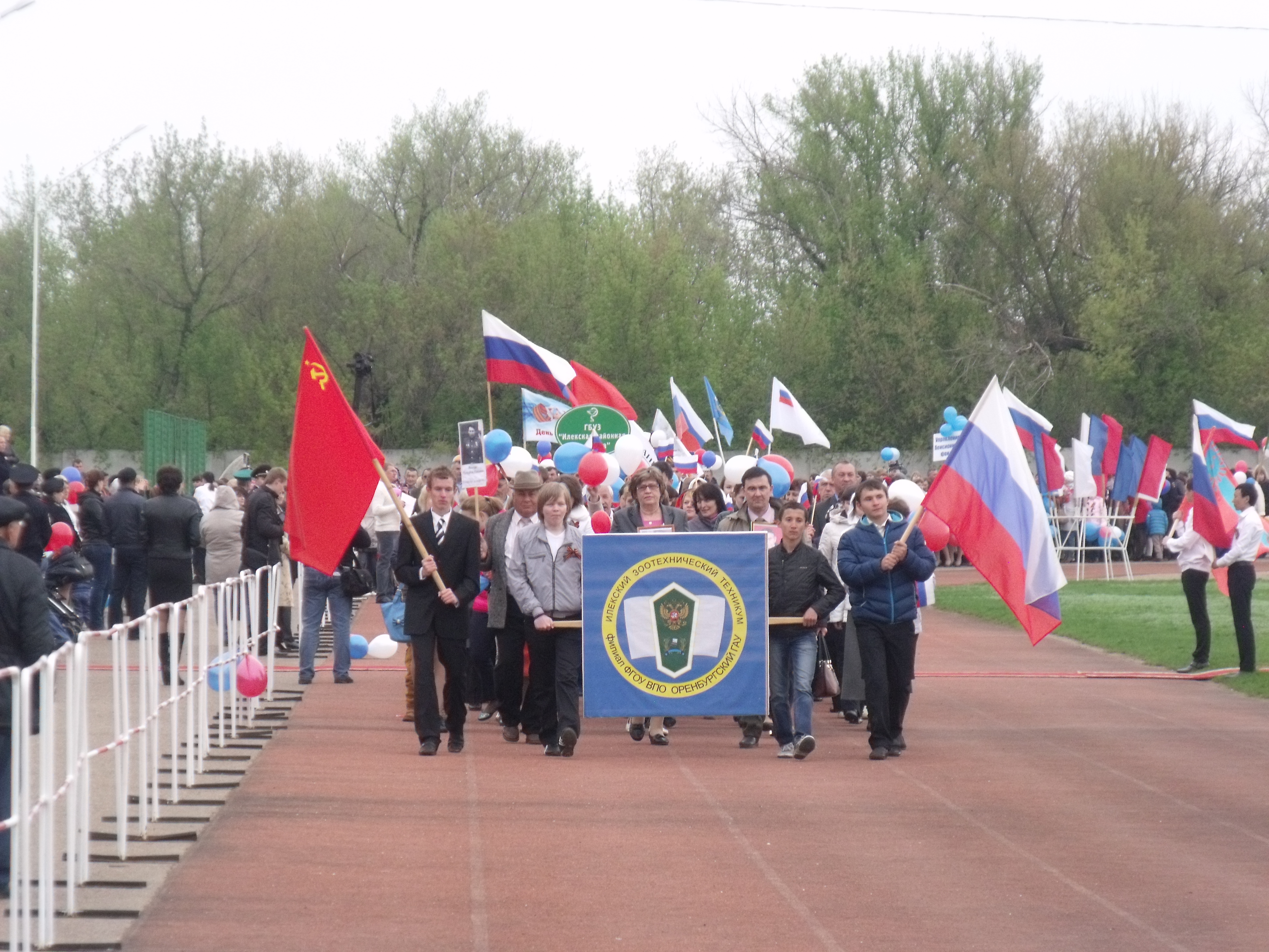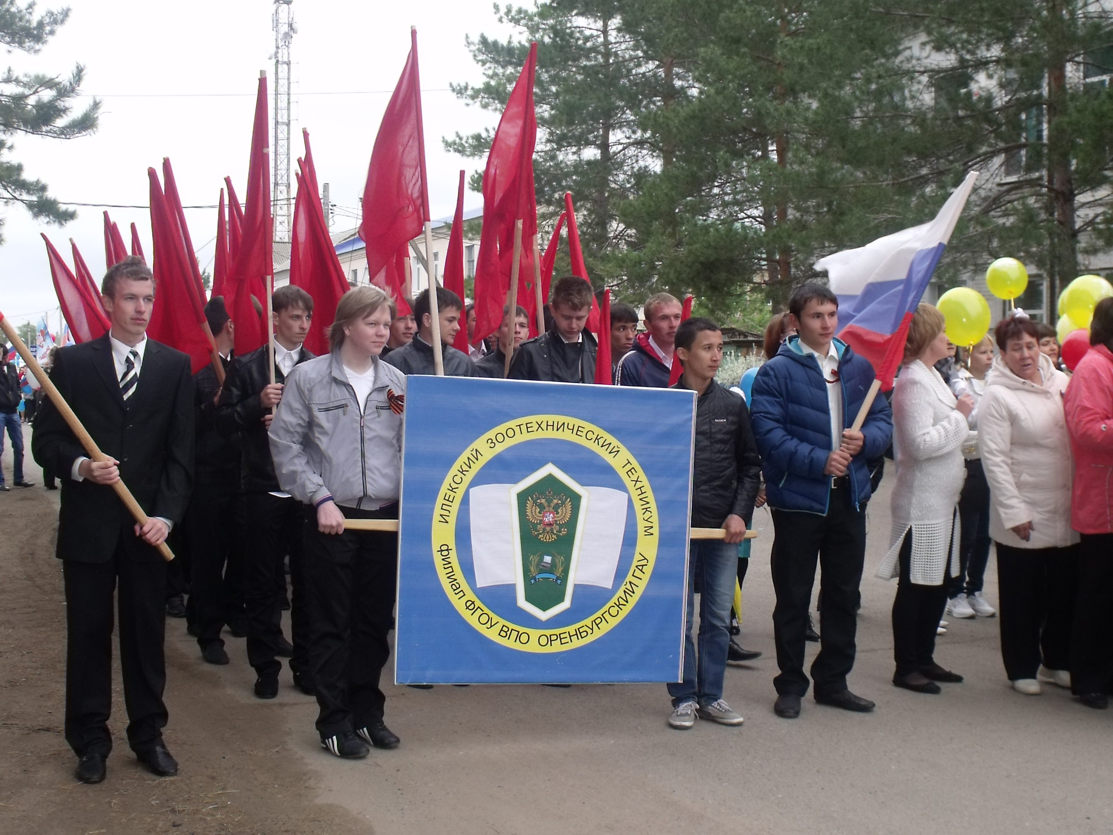 Парад открыли ребята, студенты нашего техникума, которые несли флаги 15 советских республик и 30 красных флагов-символов Победы. В Параде приняли участие свыше 10 организаций, учреждений с. Илек.