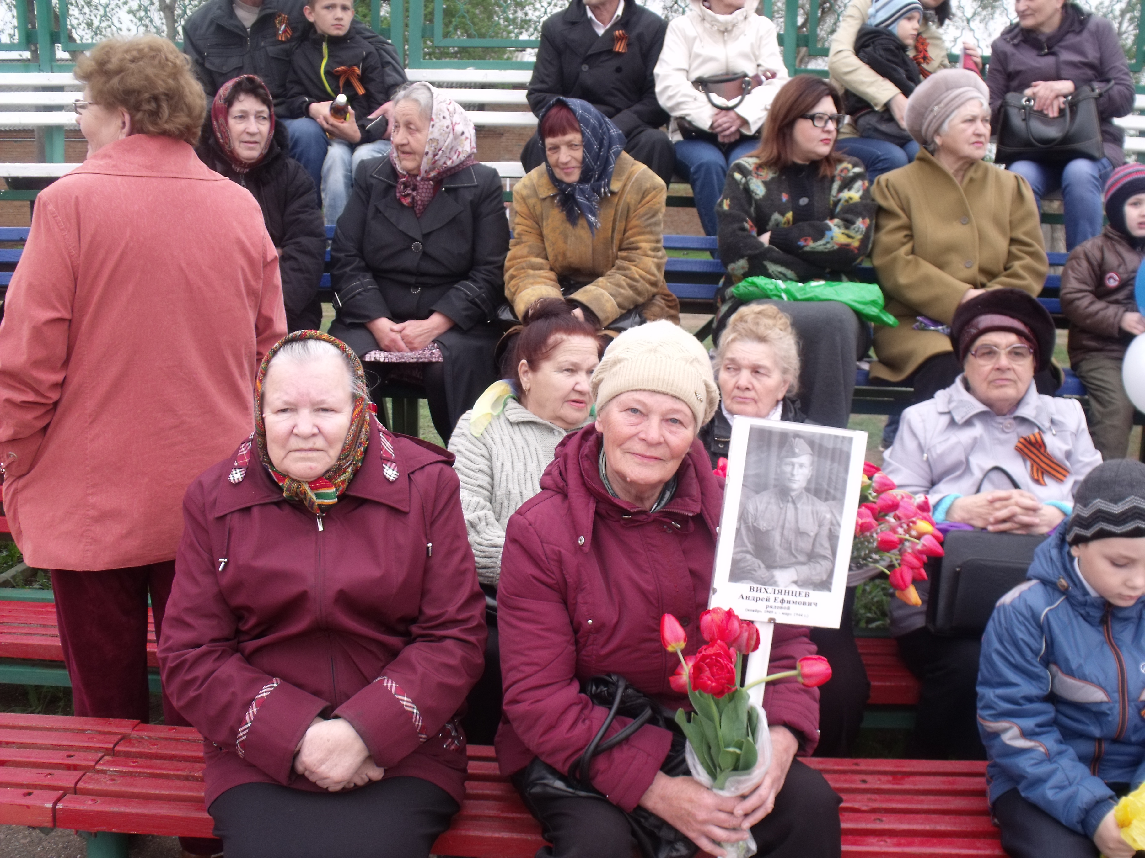 Студенты и сотрудники нашего техникума своим участием поддержали акцию «Бессмертный полк». Они несли в руках фотографии своих дедов и прадедов, которые защищали страну от фашистов. На штандартах, которые были подготовлены заранее, были указаны сведения о родственниках - ветеранах ВОВ с указанием фронта, званий и годов службы.