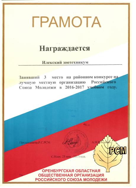 6-Разное -Команда Илекского зоотехнического техникума была награждена грамотой за 3 место в районном конкурсе на лучшую местную организацию РСМ.