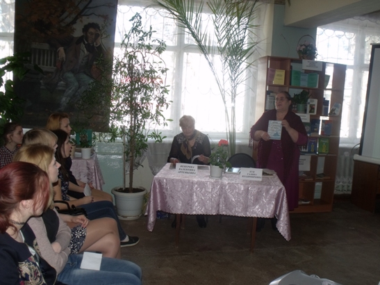 В читальном зале техникума проведена литературная гостиная под названием «На крыльях поэзии», где студенты первого курса встретились с поэтами Илекского района: Куц Галиной Владимировной и Неверовой Валентиной Артемьевной.