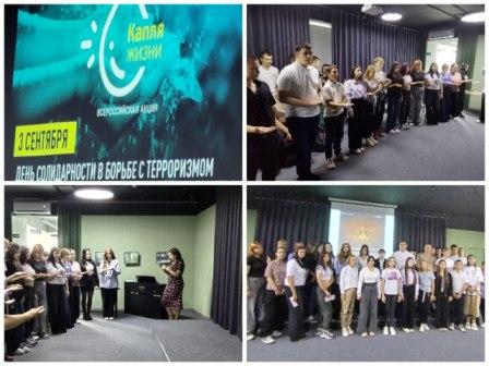 трагедии в Беслане минутой молчания. Приняли участие во Всероссийской акции «Капля жизни» — символическом жесте памяти, добра и надежды.